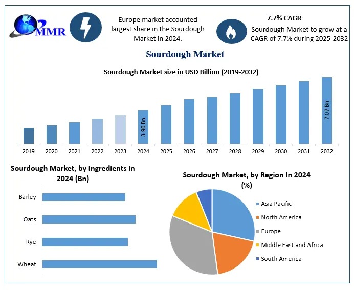 WILMINGTON, DE, UNITED STATES, October 21, 2025 /EINPresswire.com/ -- Explore the global Sourdough Market, valued at USD 3.90 Billion in 2024 and projected to reach USD 7.07 Billion by 2032. Discover trends in artisan sourdough, gluten-free options, and growing consumer demand worldwide.