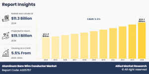 According to a new report published by Allied Market Research, the global aluminum bare wire conductor market size was valued at $11.3 billion in 2024 and is projected to reach $19.1 billion by 2034, growing at a CAGR of 5.5% from 2025 to 2034. This growth is fueled by the rapid expansion of renewable energy projects, infrastructure upgrades, and the rising demand for cost-effective, high-performance electrical transmission solutions.