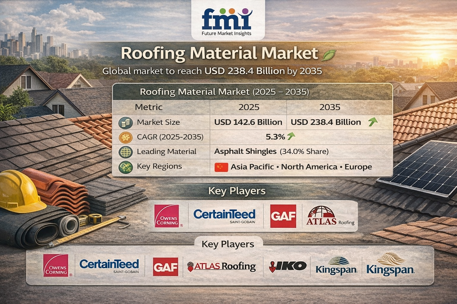 NEWARK, DE, UNITED STATES, April 2, 2026 /EINPresswire.com/ -- The global roofing material market is valued at USD 142.6 billion in 2025 and is projected to reach USD 238.4 billion by 2035, expanding at a CAGR of 5.3%. Growth is fueled by residential construction in emerging economies, re-roofing and replacement demand in mature markets, and rising preference for cool, sustainable, and solar-ready roofing systems.