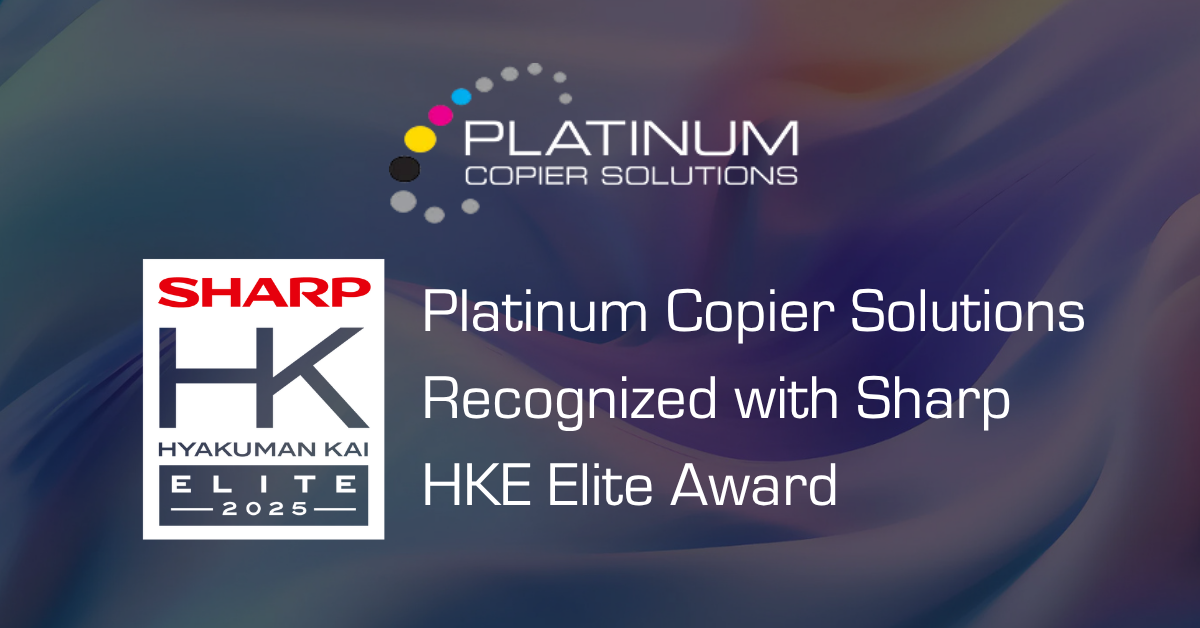 The Hyakuman Kai Elite (HKE) designation is awarded within the Sharp dealer network to recognize select partners who demonstrate strong performance, high levels of customer service, and consistent business excellence. This recognition highlights Platinum Copier Solutions’ ability to maintain strong client relationships while delivering dependable office technology solutions.